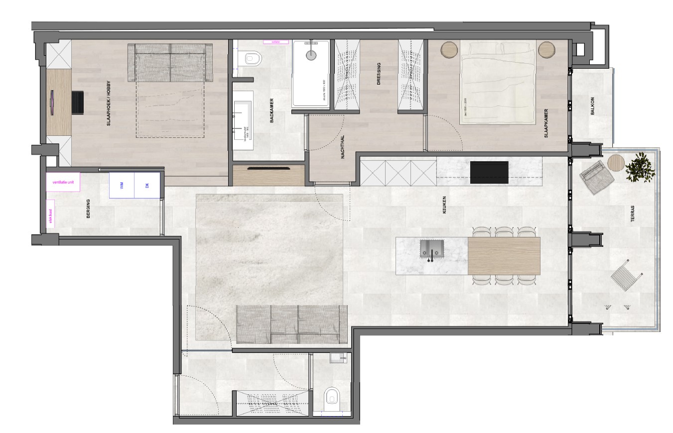 Elke woonunit wordt afgewerkt met hoogwaardige materialen en biedt een harmonieuze combinatie van modern design en tijdloze klasse. Daarnaast beschikt het project over acht ruime garages en bijhorende bergingen, zodat uw woonervaring compleet en zorgeloos is.